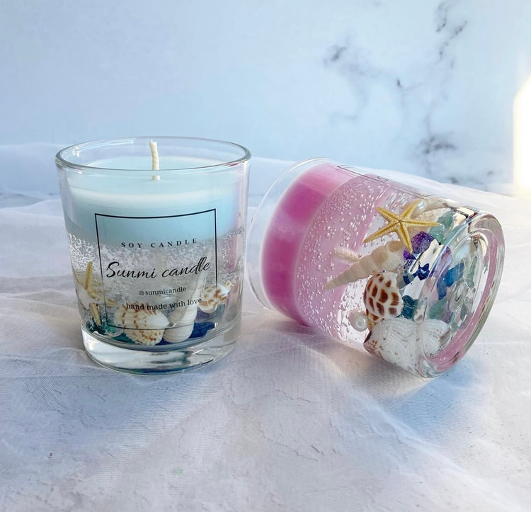 شمع مدل شات شیشه ای دریایی رنگ های پاستلی